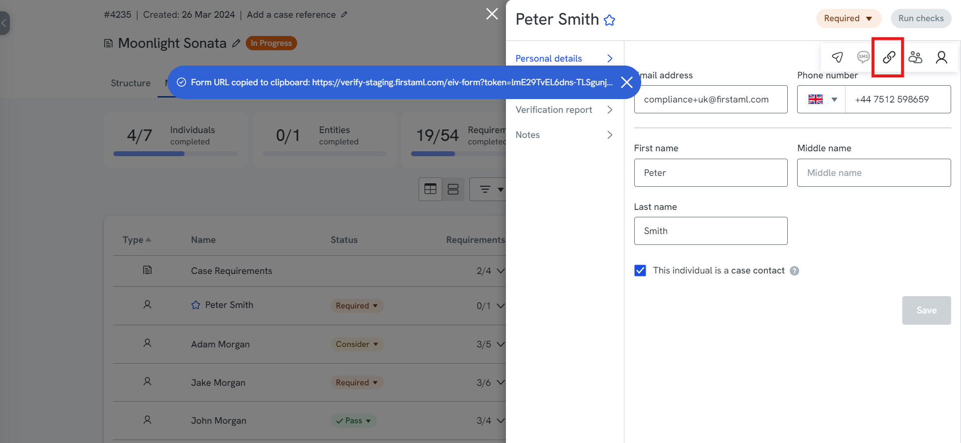 - Ensure the person you want to collect information from is added to the case as an individual and that you have added their email address and/or mobile number.
