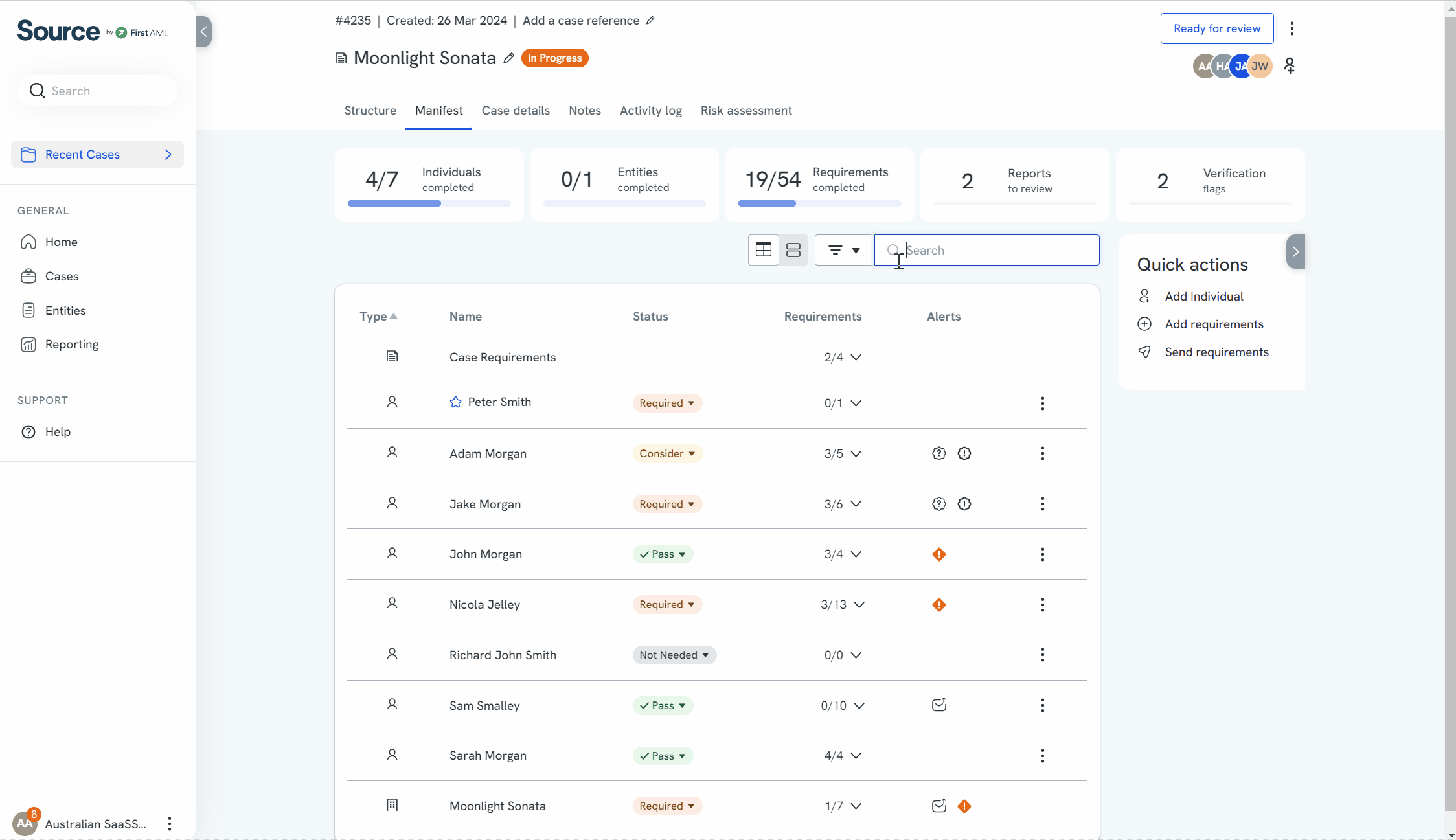 The Manifest tab provides a centralised view of case progress. It shows what’s required, what actions to take, and the status of those actions, making it easy to manage your case from one place.