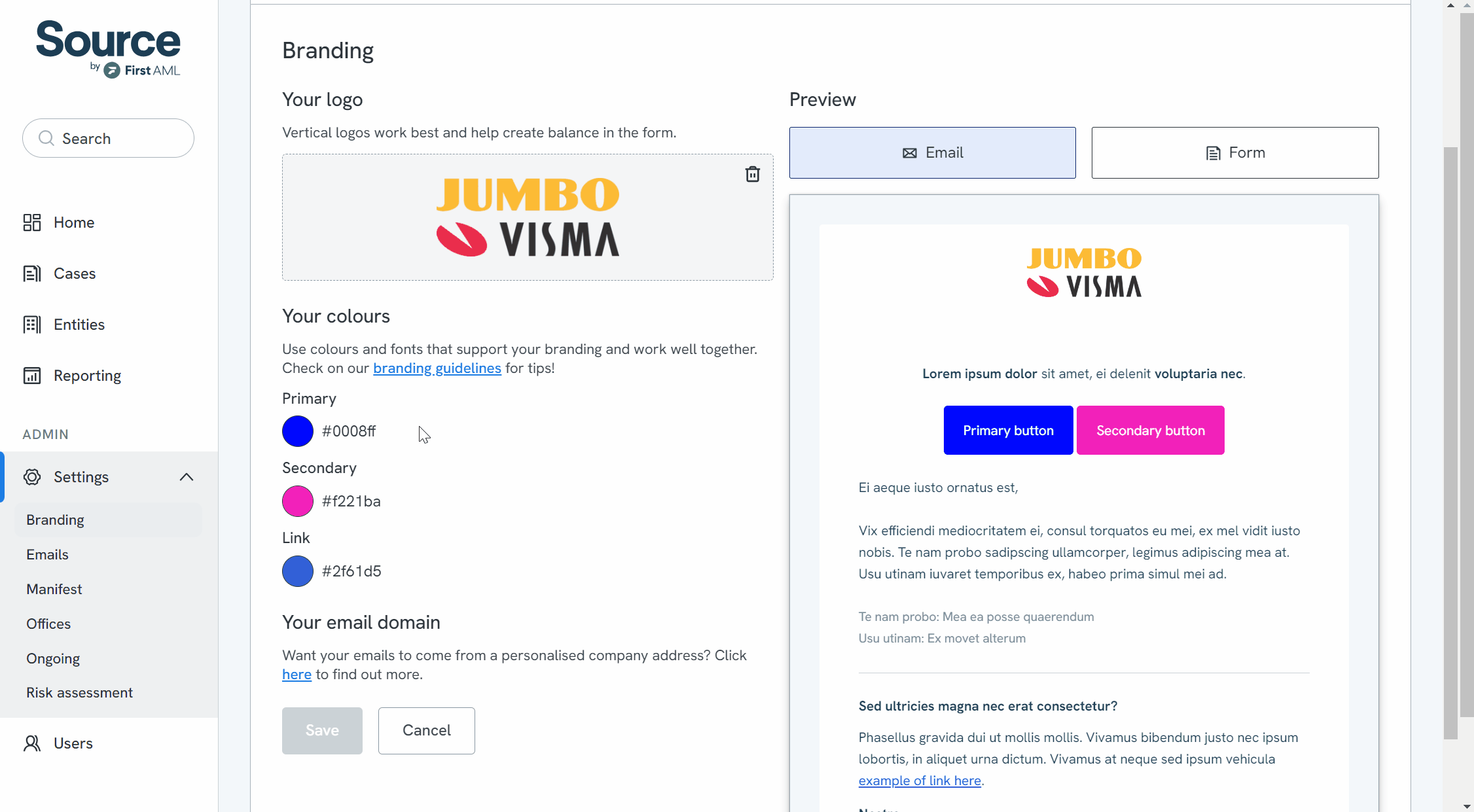 Customise your Source branding to reflect your company identity. You can upload your logo, choose brand colours, and ensure all customer-facing touchpoints match your business look and feel.
