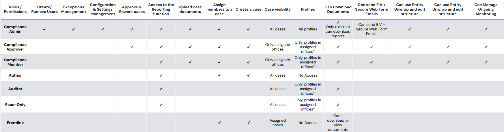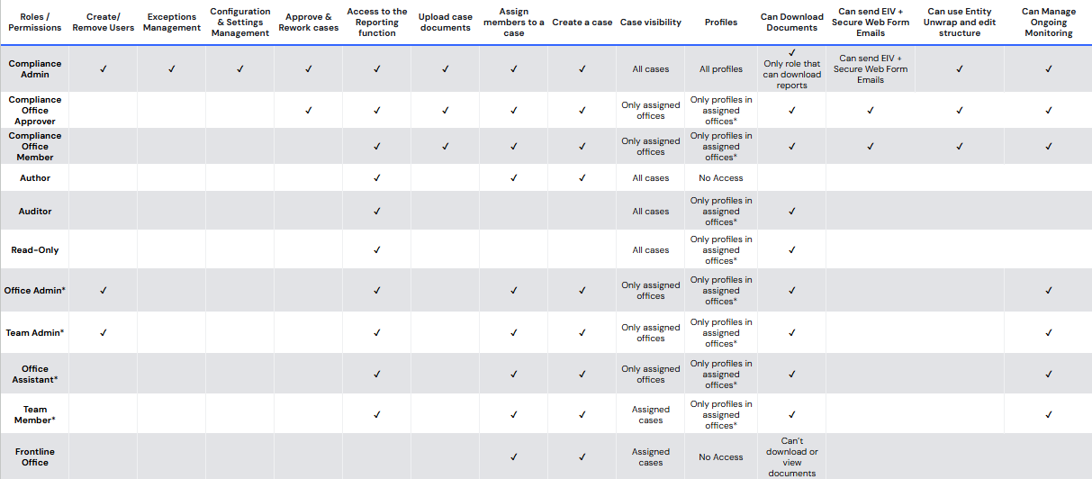 The First AML Platform offers different user roles to provide flexibility and control over access and permissions. User roles determine the level of functionality and access each user has within the platform.