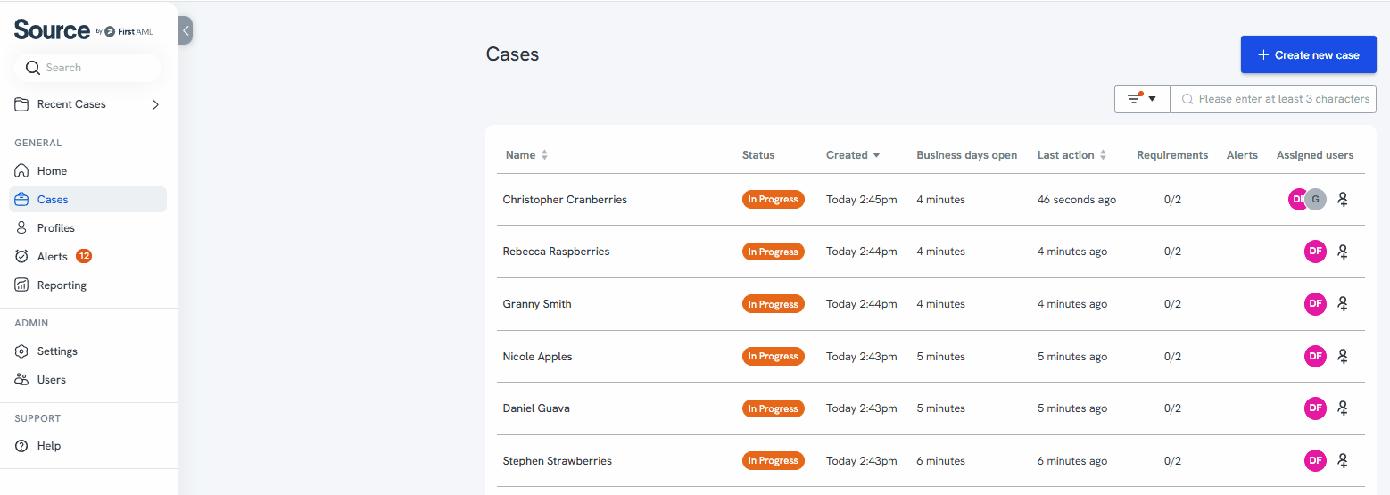 Once a case has been created in the platform, you have the ability to assign other team members who may need access to the case for tracking or for working on the case.