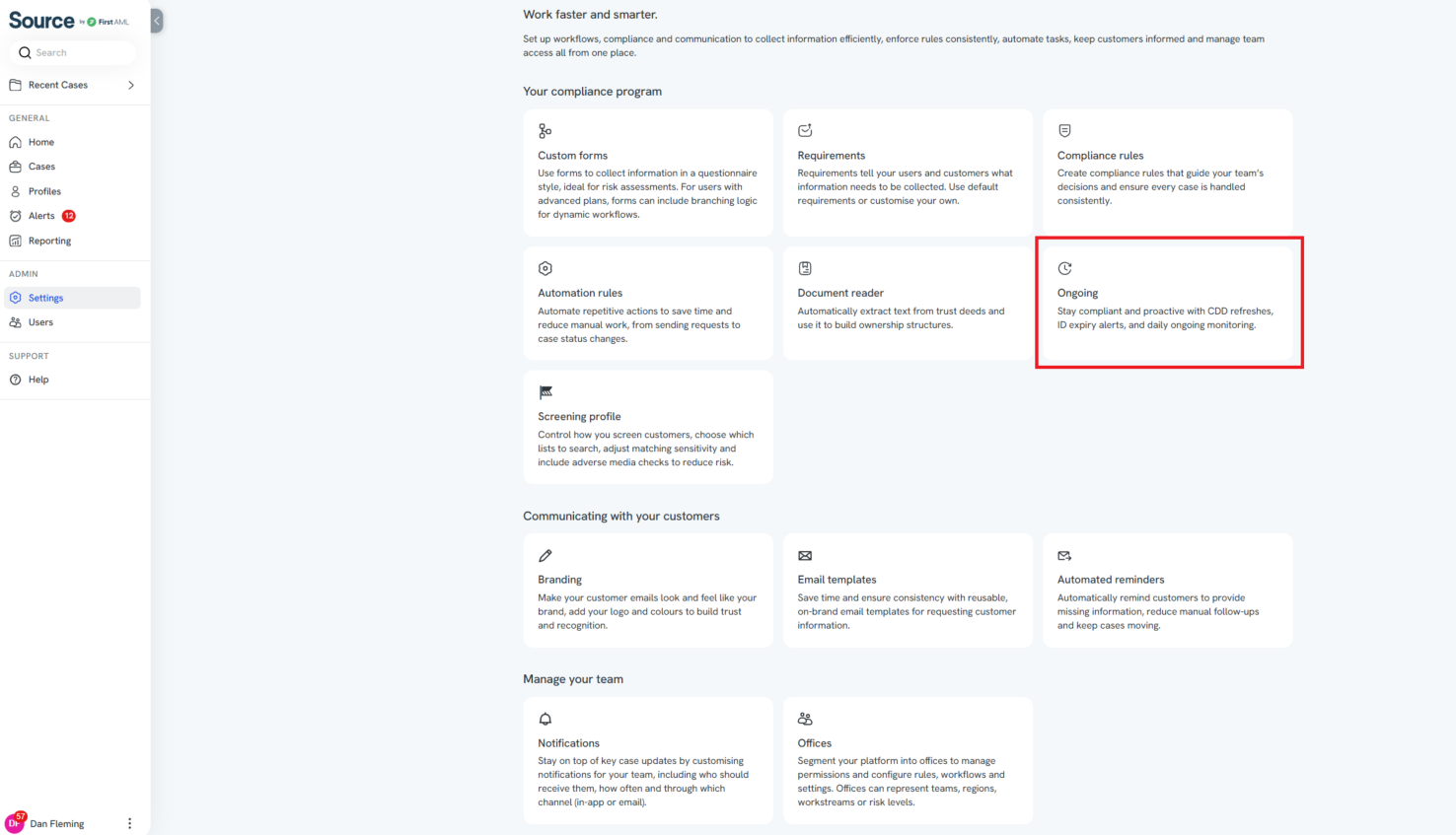 How to manage Ongoing Monitoring for an individual (or entity) customer