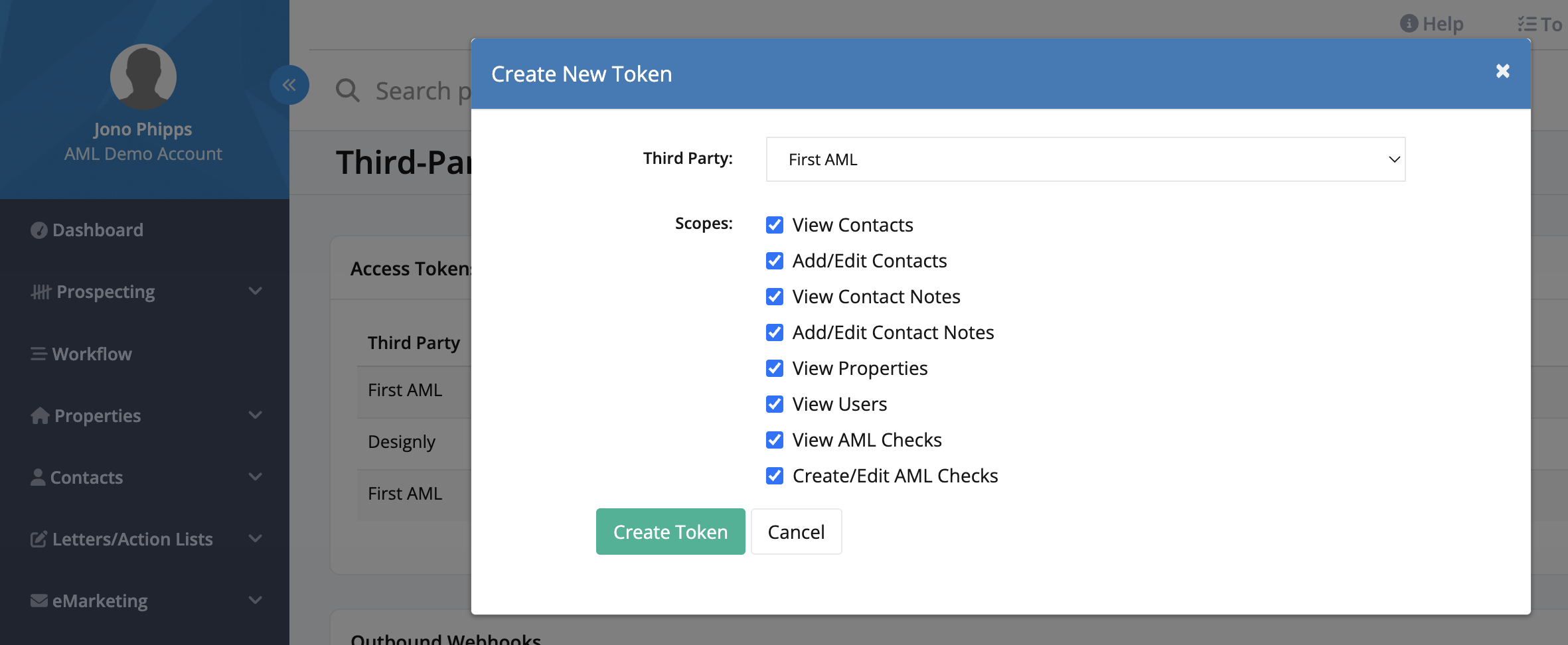 Create a Vault Access Token to allow First AML to retrieve properties and contacts from your Vault account.