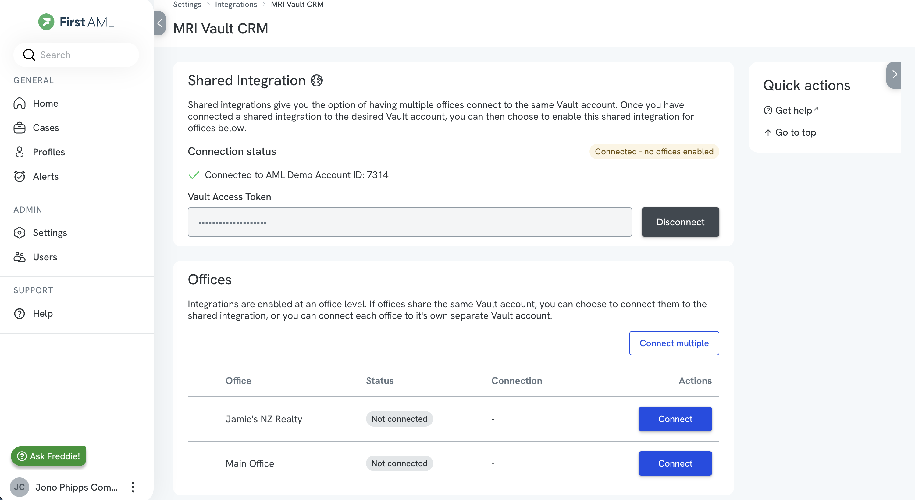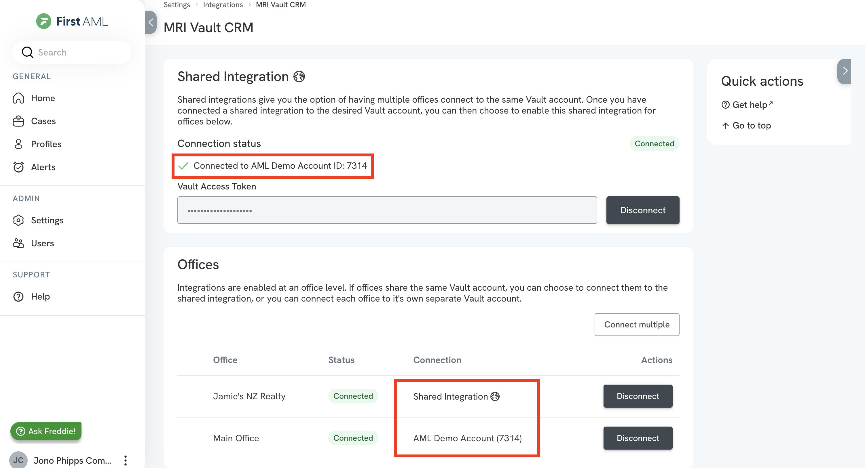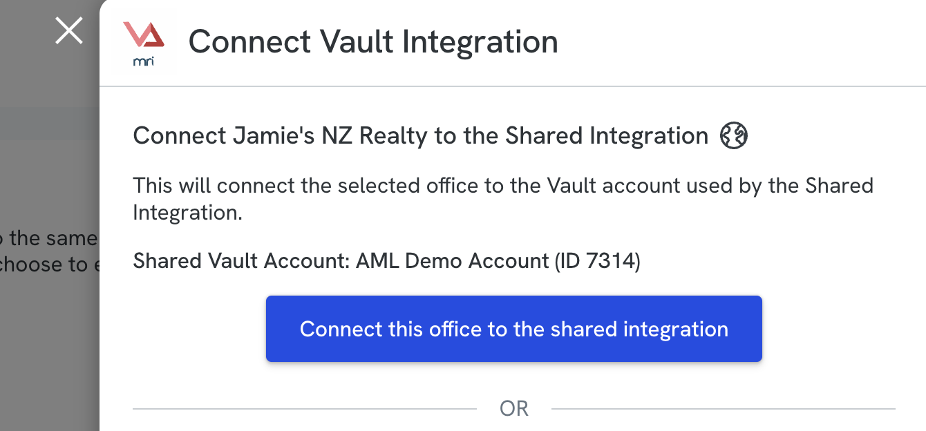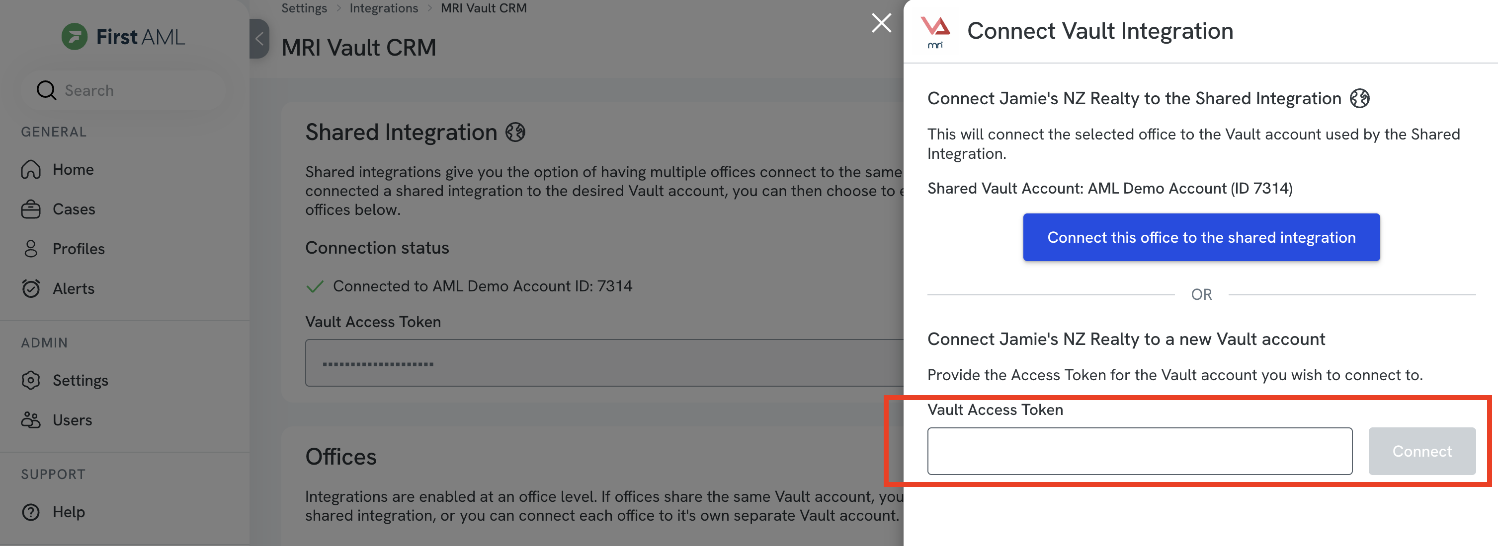 If you have multiple First AML offices sharing the same Vault account, our “Shared integration” makes it easy for you to connect your Vault account once and enable this connection for multiple offices, without setting up each office individually.