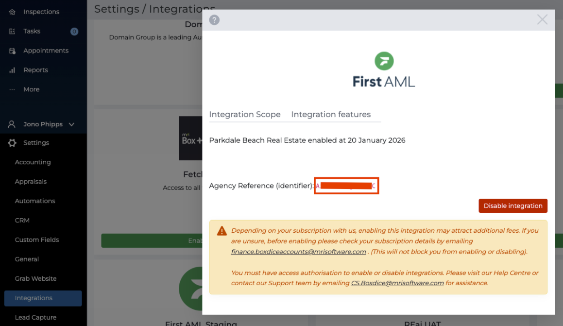 Our Box and Dice integration is simple to set up and enables you to search for a Box and Dice property from within First AML when creating a case. Property and contact details automatically flow into First AML. This enables less manual data entry, fewer errors, faster onboarding, and a smoother AML process that automatically keeps Box and Dice AML records in sync.